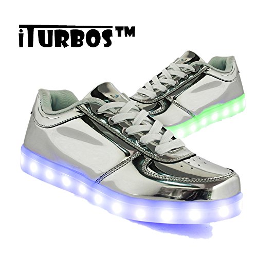 Best Seller! iTurboS™ Metalline Unisex Women Men USB Charging Light Up LED Shoes Flashing Sneakers (Silver) 37 Review